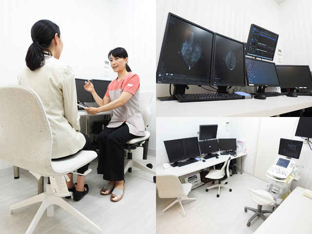 職場健診や区の検診で異常を指摘された方には、マンモグラフィ・超音波(エコー)による精密検査も対応。