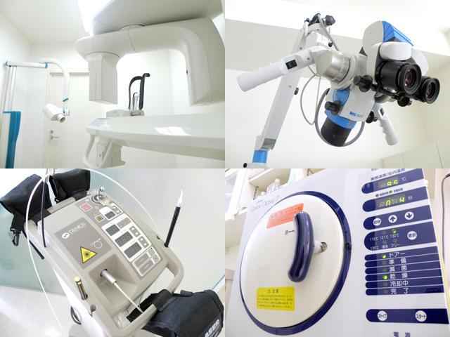 その他にも、歯の治療の不快さを最小限にするために、レーザー治療機器、カボダイアグノデント(デジタル虫歯診断器)、デジタルレントゲン(デジタルX線画像解析システム)、セレック3Dシステム(セラミック修復機械)、デジタルマイクロスコープ等の最新機器を導入し、最先端の治療法で患者様一人一人の歯を大切に育む診療をしています。